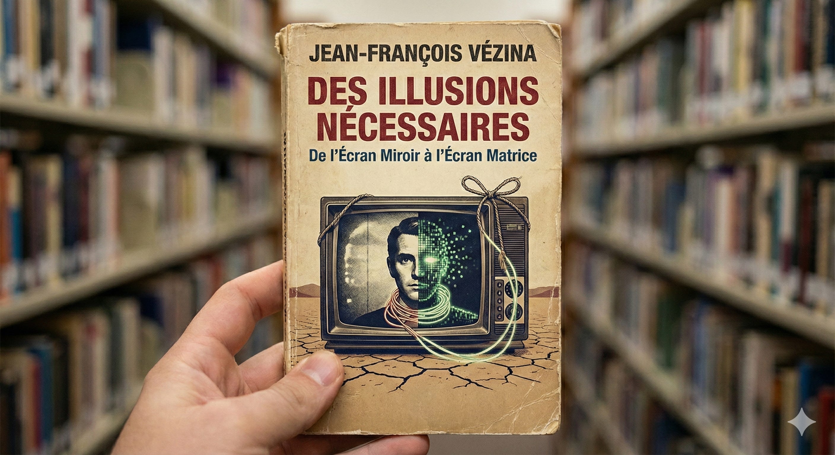Pour que le livre Des Illusions Nécessaires soit pertinent aujourd’hui, il doit intégrer les technologies émergentes. Bien que les écrits de Vézina soient antérieurs à l’explosion de l’IA générative, ses concepts s’y appliquent avec une acuité prophétique. Nous extrapolons ici sa pensée sur des œuvres plus récentes mentionnées dans le corpus.