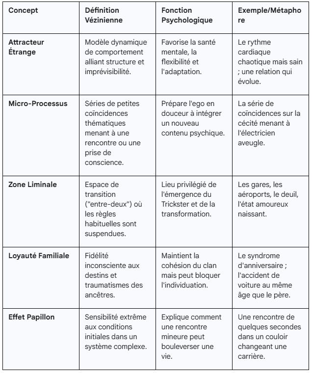 Ce document dissèque l’architecture théorique de l’œuvre, chapitre par chapitre, en intégrant les métaphores issues de la théorie du chaos (fractales, attracteurs étranges) pour éclairer les processus psychiques. Il analyse également les implications cliniques des rencontres impossibles, le rôle de l’archétype du Trickster dans les transitions de vie, et les résonances transgénérationnelles qui tissent la trame invisible de nos destinées.